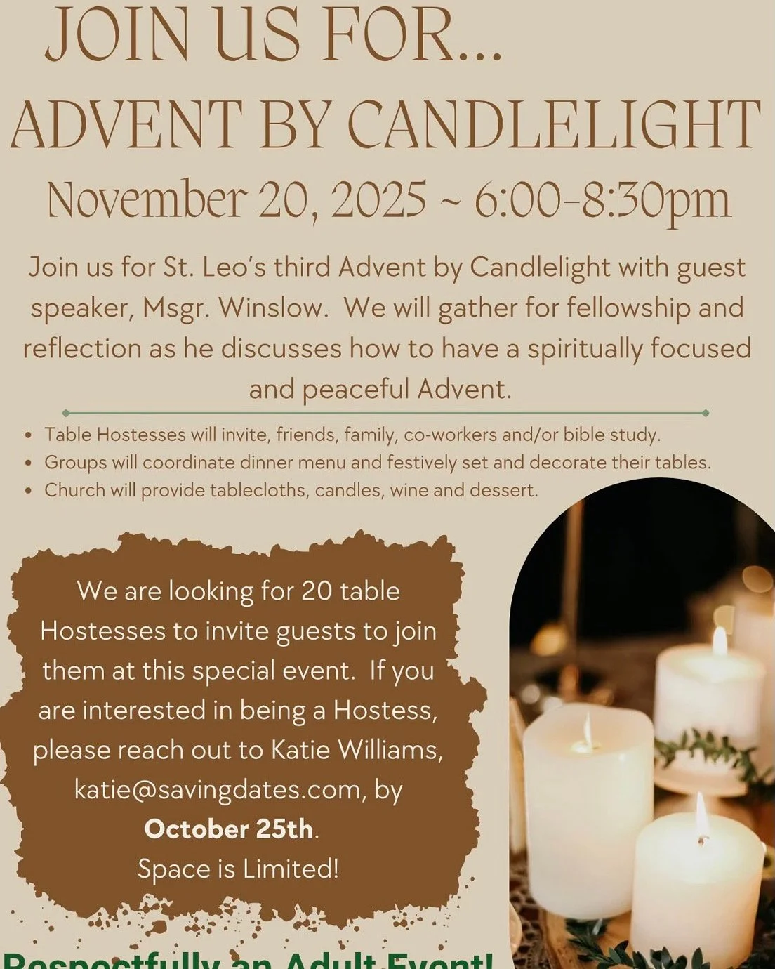 Reservations are limited! Tickets are $25 per person and may be purchased by cash or check in the parish office.