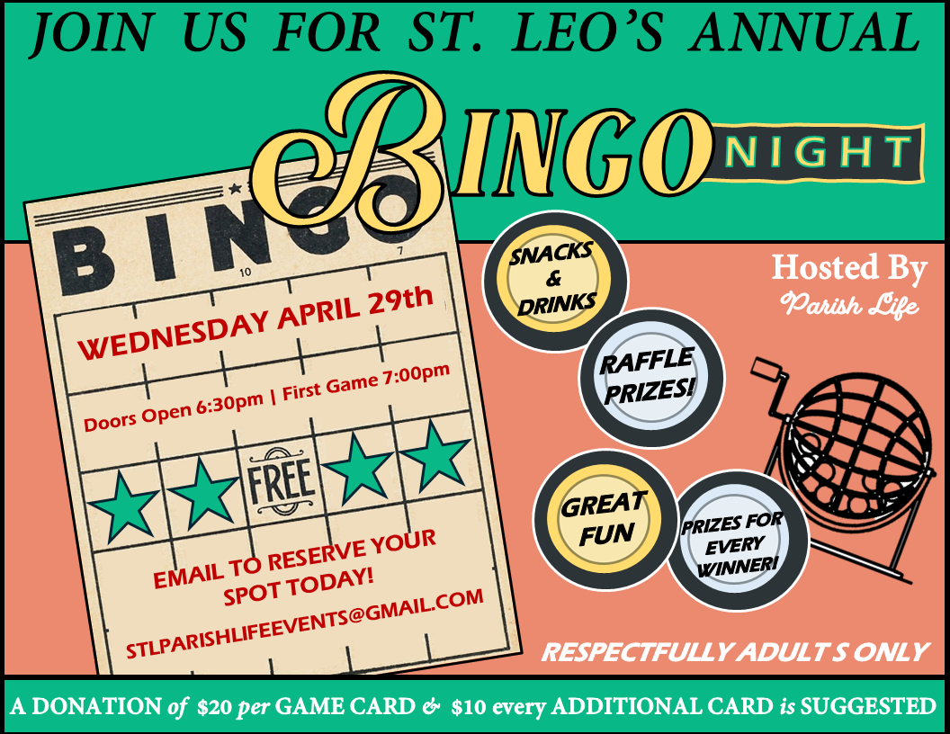 If you’re available to spend time before Our Lord in the Blessed Sacrament on either Wednesdays or First Fridays, please email Denise or Karl Zajicek: info@stleocatholic.org